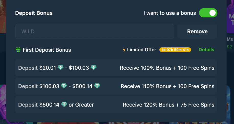 That's all, folks! Now you know how to deposit at Wild.io, how to activate and use the bonuses, and all that remains is to start playing any of the exciting games you can find at ours.